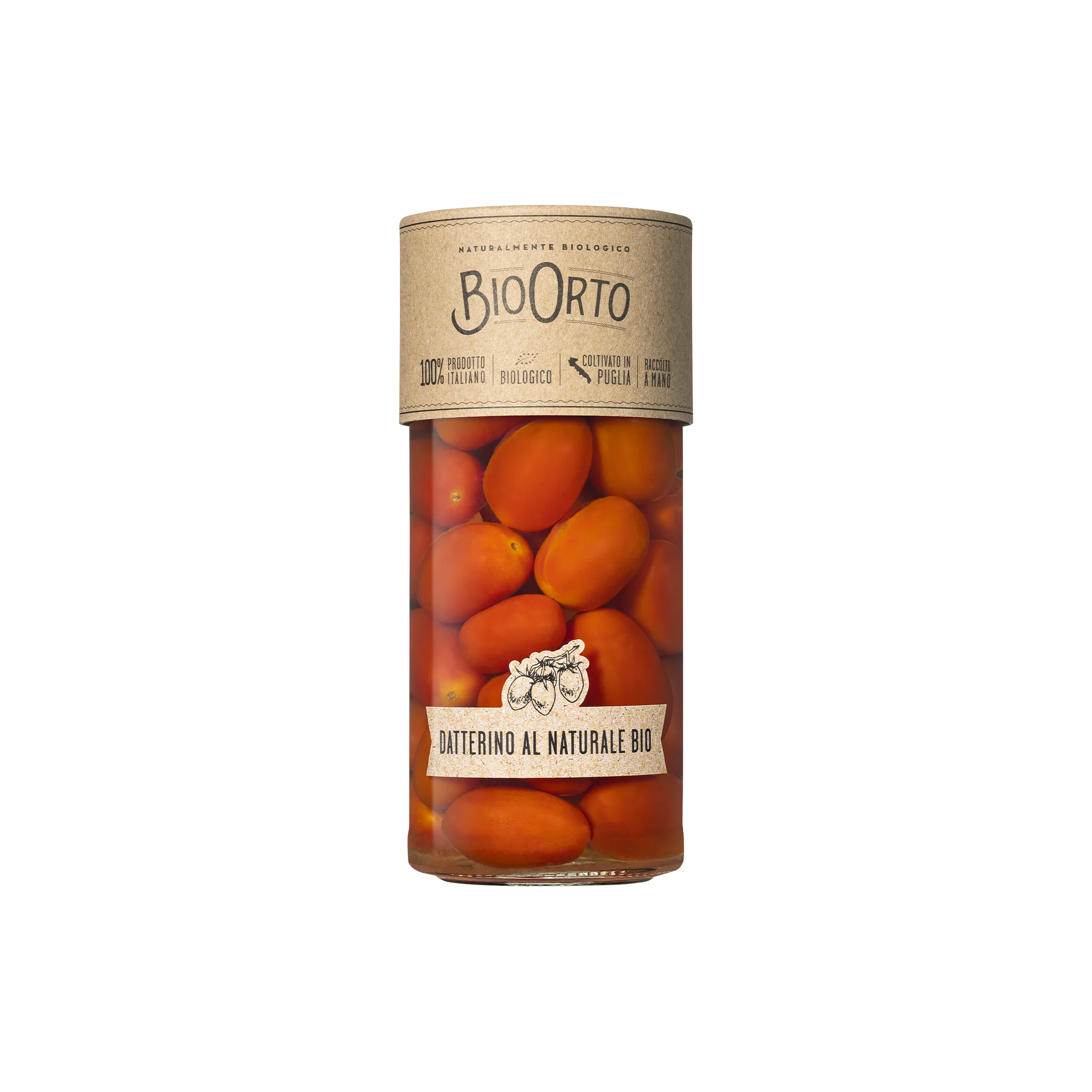 Cueillies, transformées et mises en bocaux en verre rigoureusement à la main, les tomates Datterini naturelles Bio Orto sont riches en sels minéraux et ont un niveau Brix élevé, d'où une teneur élevée en vitamines (A et C) et un indice de conservation élevé.