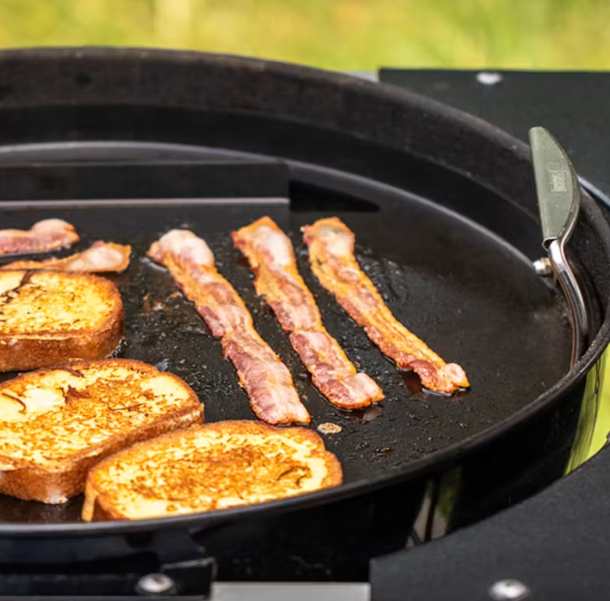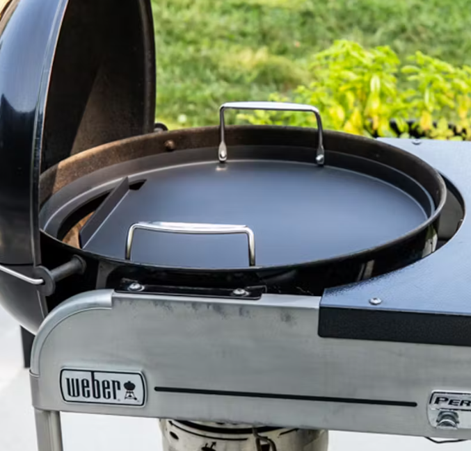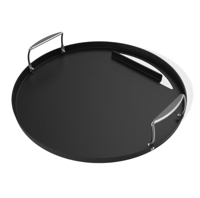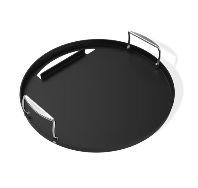Transformez votre barbecue au charbon Weber de 22 po avec cette plancha antirouille encastrable en acier au carbone prétraité et dégustez du bacon grésillant, des hamburgers écrasés, des fajitas, des sautés et bien plus encore. Occupant toute la surface du barbecue, cette plancha ronde à rebord surélevé a deux poignées en acier inoxydable pour faciliter son insertion et son retrait. Son orifice d’écoulement des graisses à l'arrière plancha facilite un nettoyage rapide vers une grande barquette (vendue séparément).