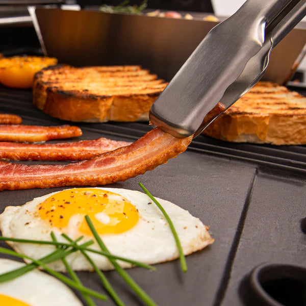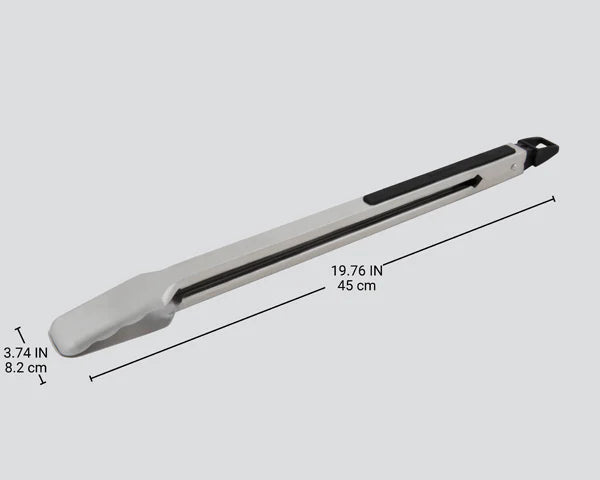 Pinces à verrou avec poignée souple. Un côté festonné pour l’adhérence, et un côté plat pour facilement ramasser les aliments.