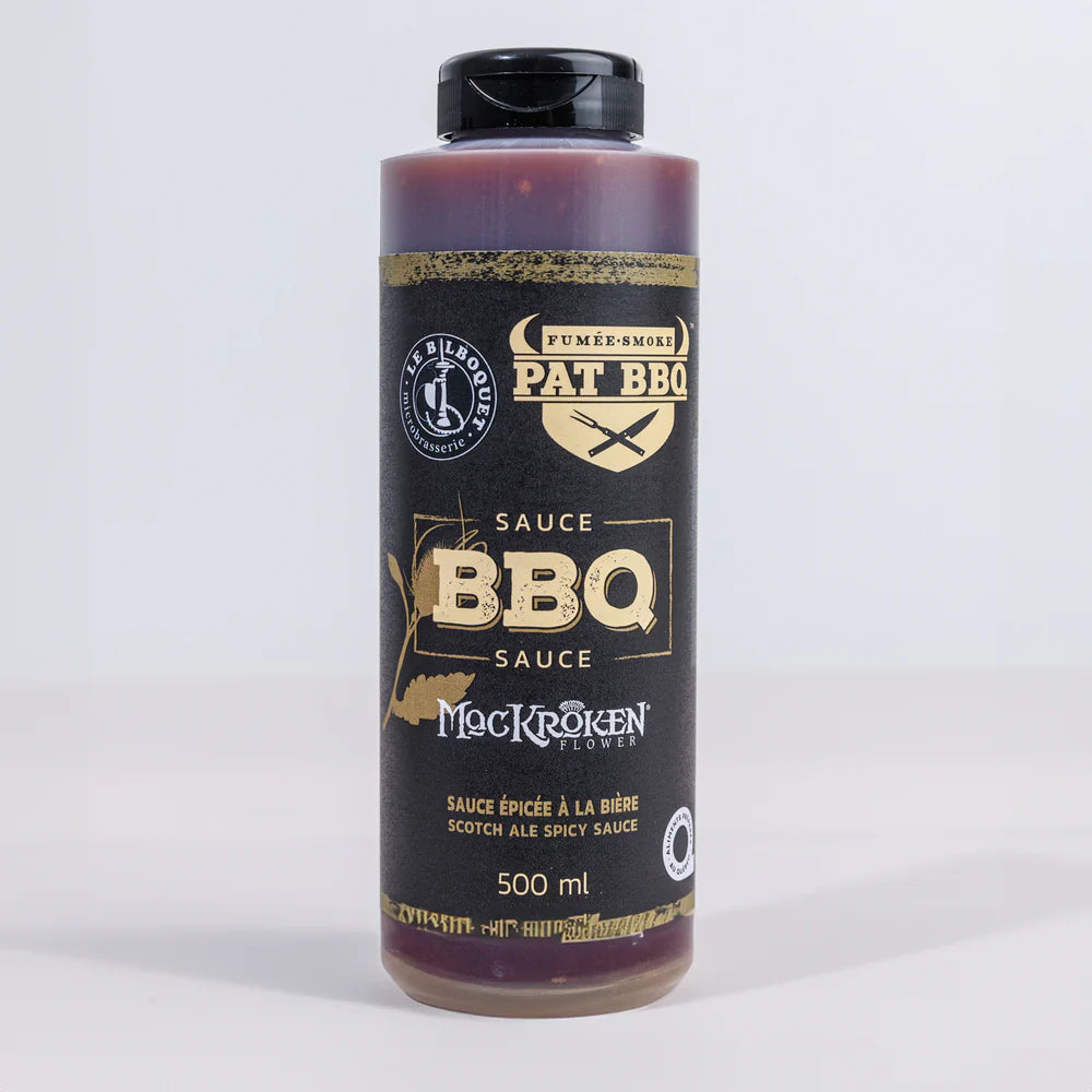 Réalisée en collaboration avec la microbrasserie québécoise Le Bilboquet, cette sauce BBQ unique contient près de 18 % de bière MacKroken — une Scotch Ale mielleuse vieillie en fût de bourbon. Le résultat ? Une sauce riche, savoureuse, avec une touche relevée qui séduit autant les amateurs de bière que de grillades.