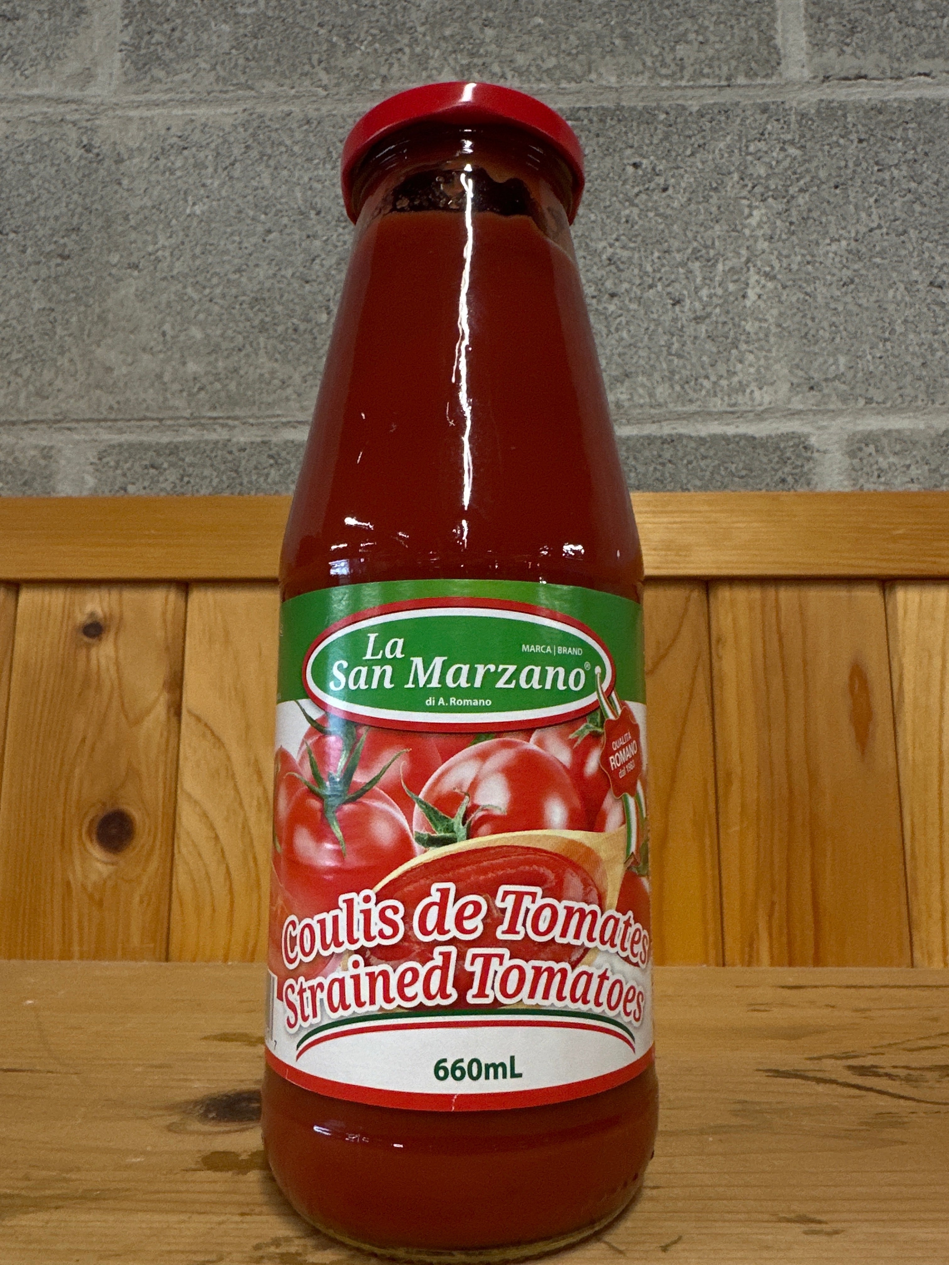 Our San Marzano tomatoes are served with a particularly creamy coulis, lightly flavored with a basil leaf . San Marzano tomatoes are distinguished by their intense red color and their more elongated shape than other varieties of Italian tomatoes.