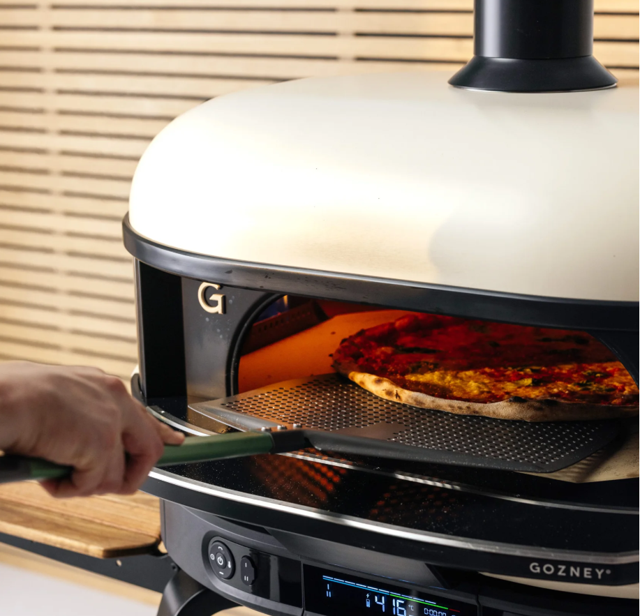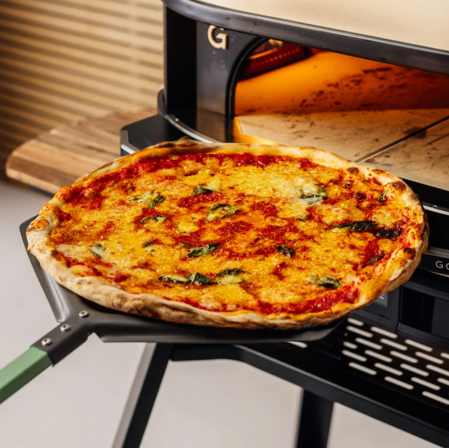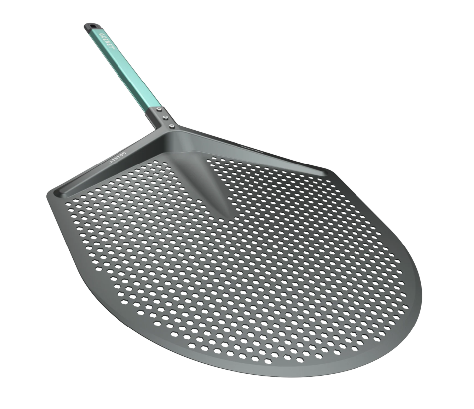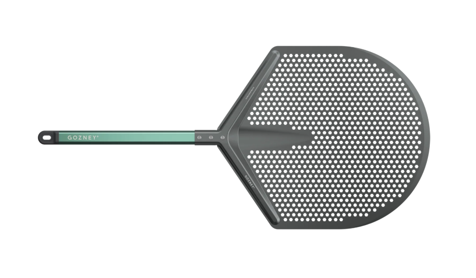 The Pro Perforated Pizza Peel was developed in collaboration with the world's best pizza chefs to provide a superior, lightweight, and optimized pizza experience. Designed with input from Gozney's pizza experts, the Pro is specifically tailored to the needs of pizza makers dedicated to making their best pizza. Its fully perforated blade maximizes flour dispersion, reducing the risk of excessive buildup on the bottom of the pizza and possible burning during cooking. The rounded blade shape cuts perfect circles every time. The chiseled aluminum handle features sloped sides for a secure grip and a curved underside for a peel that slides freely in the hand when tossing the pizza. The aluminum construction provides lightweight comfort and overall responsiveness, creating a seamless extension of the chef's arm. With this peel, you'll be able to reach your full pizza-making potential with ease and precision.